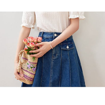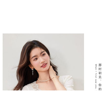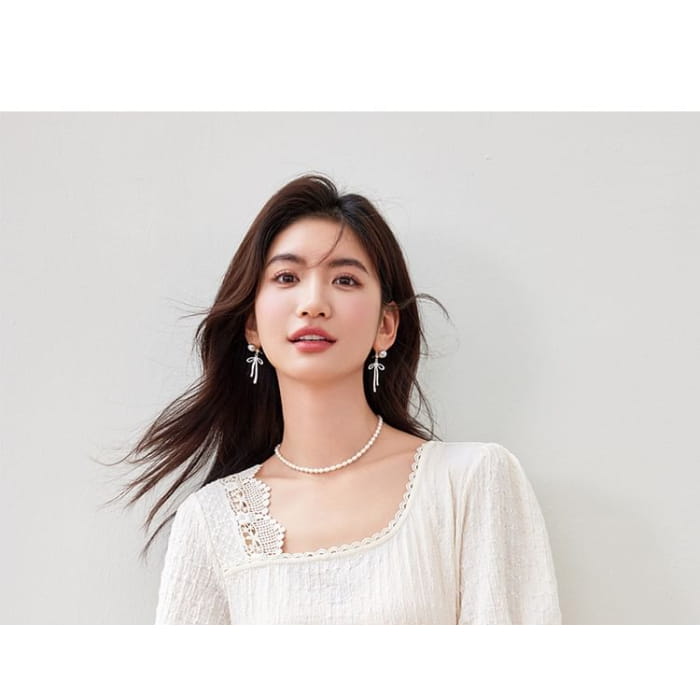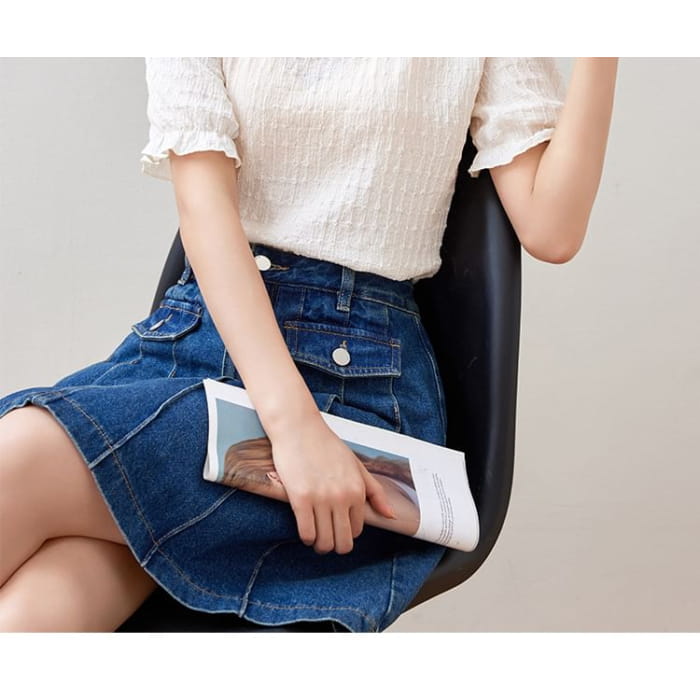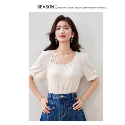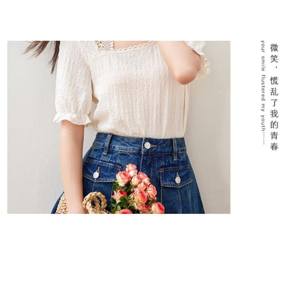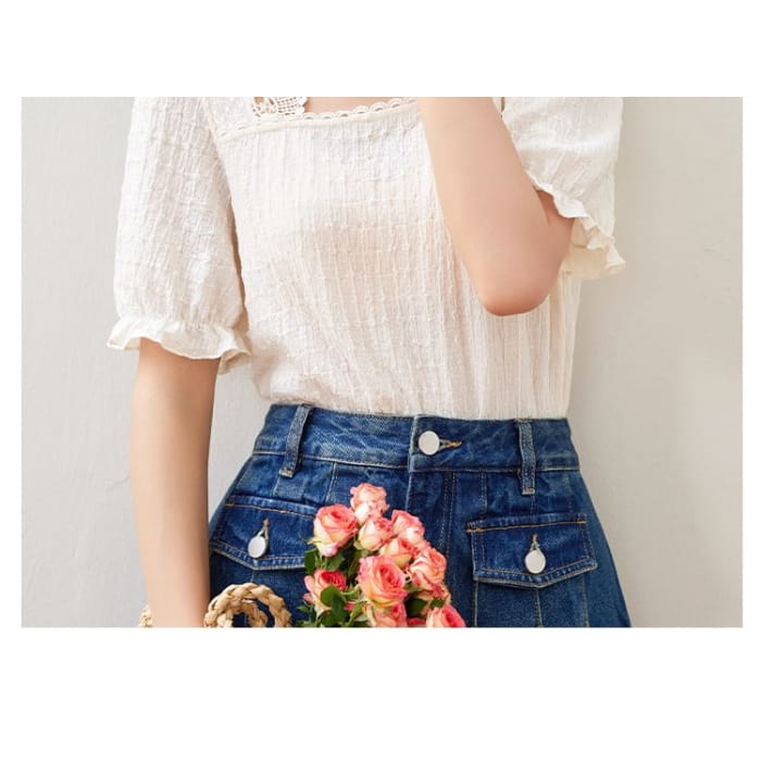 Kurzärmliges Crop-Top mit eckigem Ausschnitt und Spitzenbesatz
