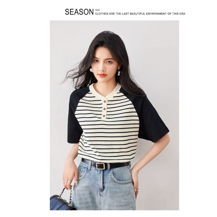 Kurzärmliges, gestreiftes Baseball-T-Shirt