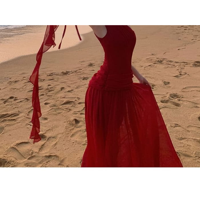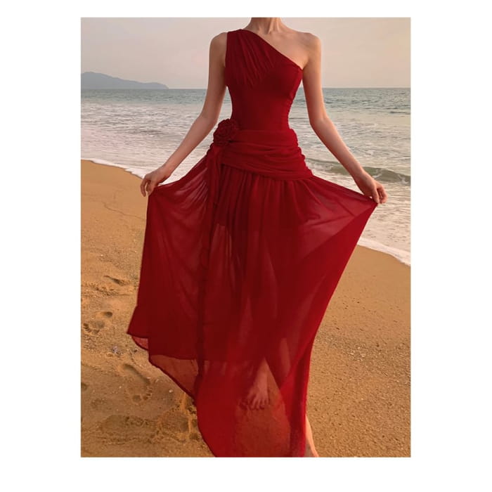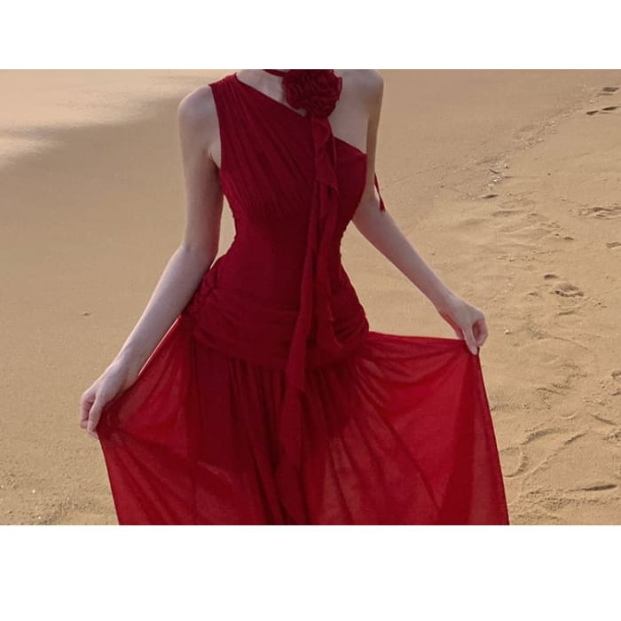 Ärmelloses One-Shoulder-Rüschenbesatz
