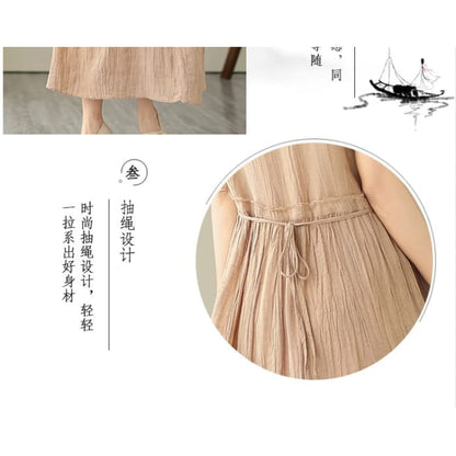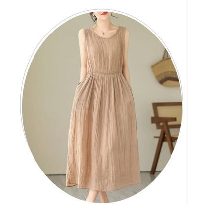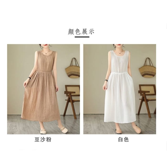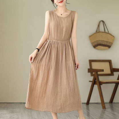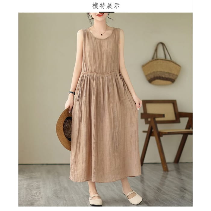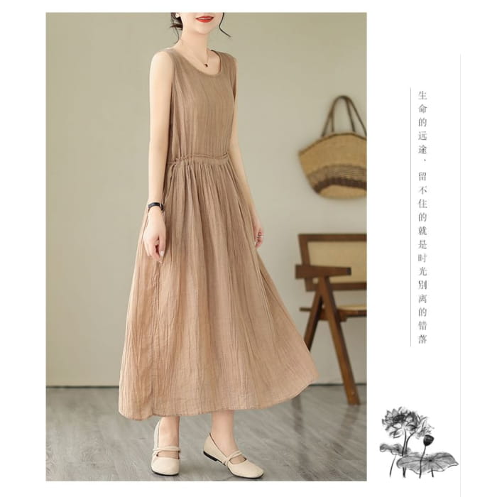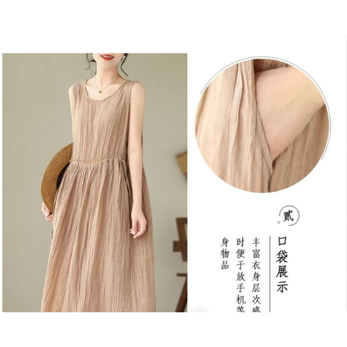 Ärmelloses Maxi-A-Linien-Kleid mit Rundhalsausschnitt und schlichtem Kordelzug in der Taille