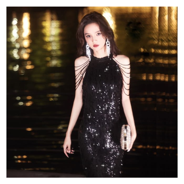 Ärmelloses Mini-Abend-Etuikleid mit Pailletten
