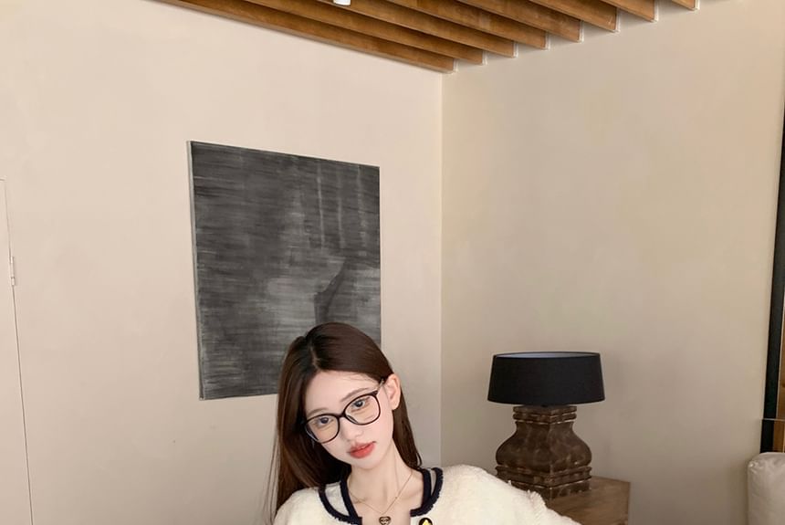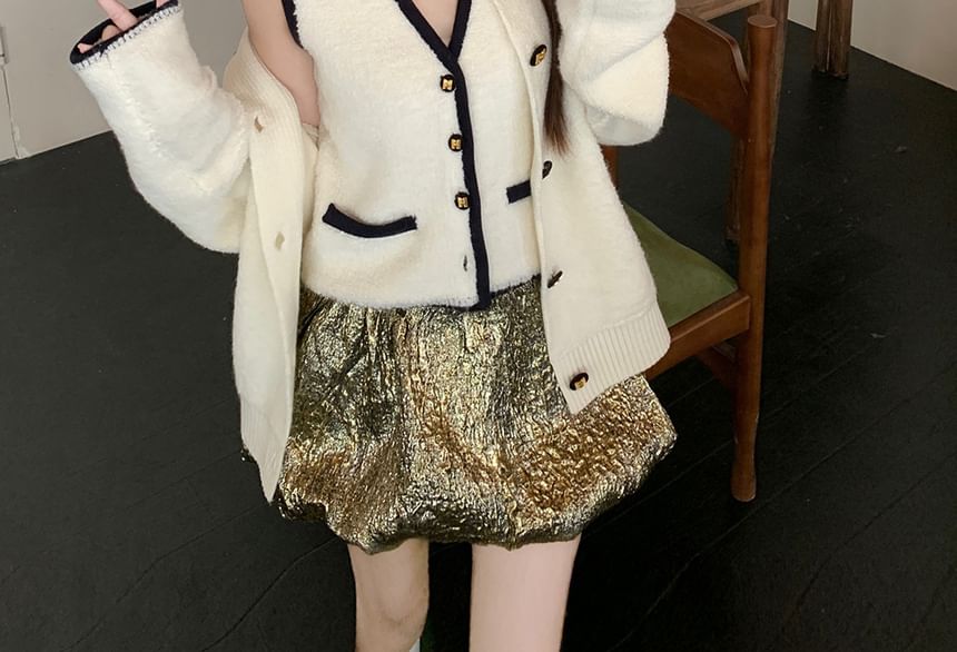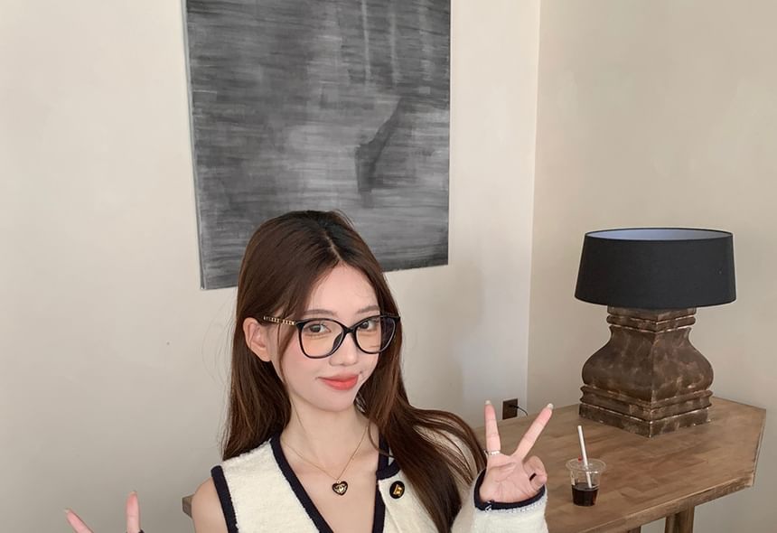 Sleeveless V-Neck Contrast Trim Button Up Sweater Vest / Cardigan