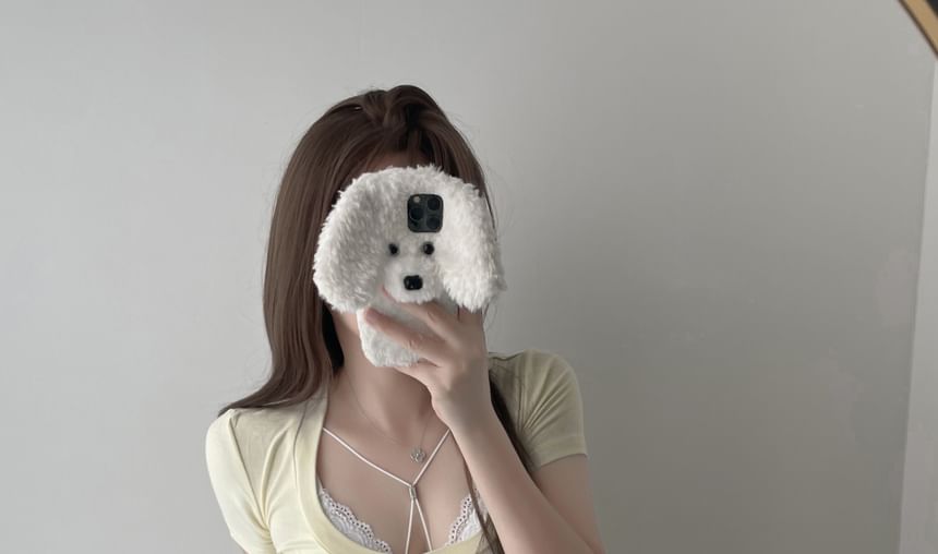 Short-Sleeve Scoop Neck Plain Slim Fit Crop T-Shirt / Halter Neck Lace Bra Top