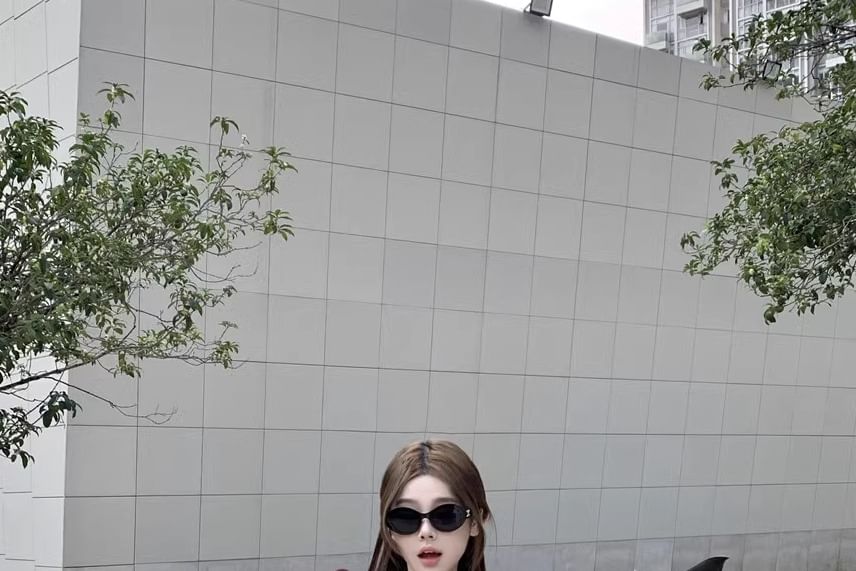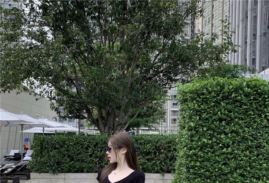 Short-Sleeve V-Neck Plain Slim Fit Crop Tee