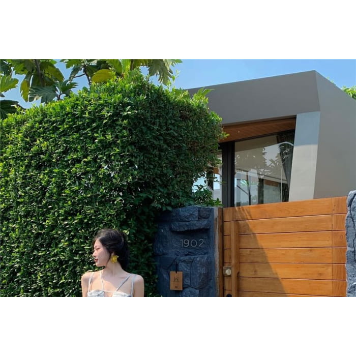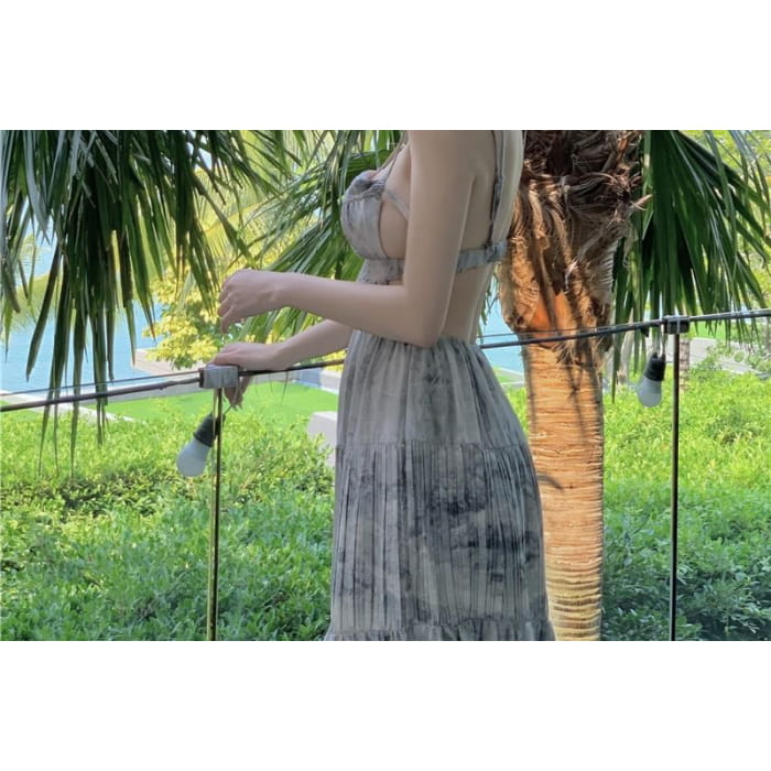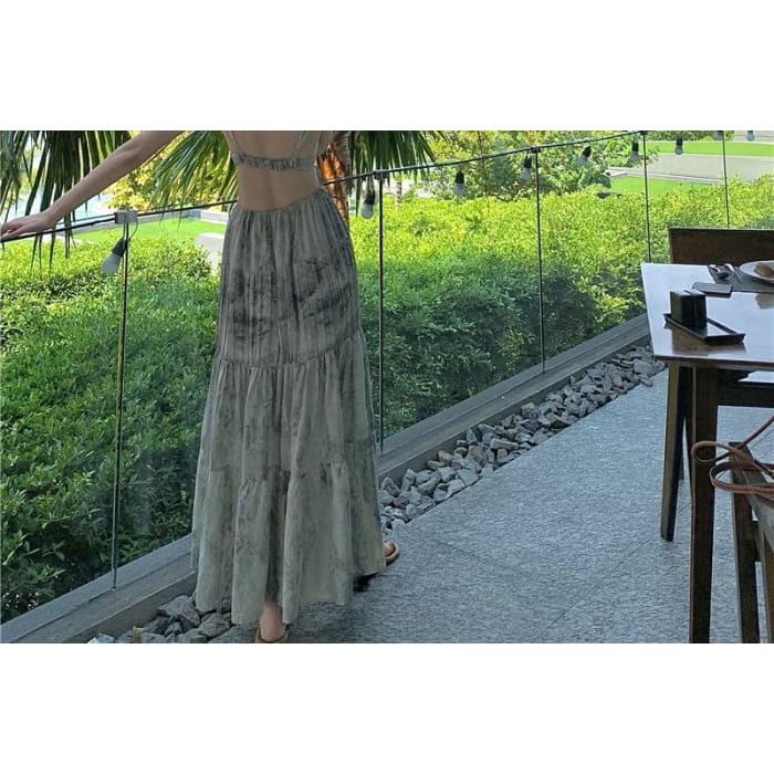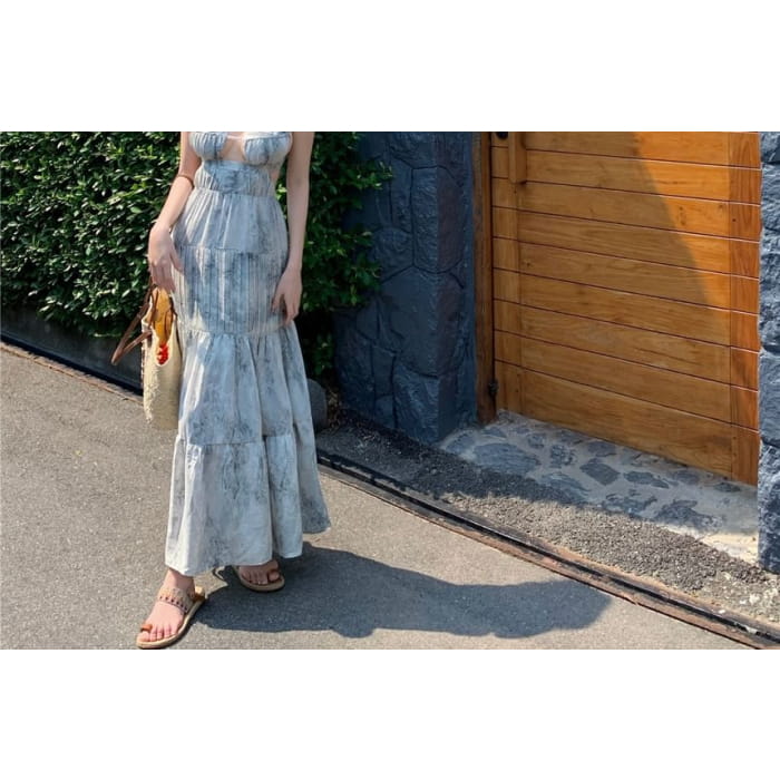 Maxi-Sommerkleid mit Spaghettiträgern und Blumen-Ausschnitt
