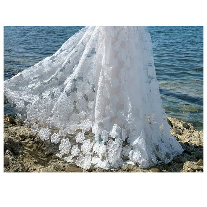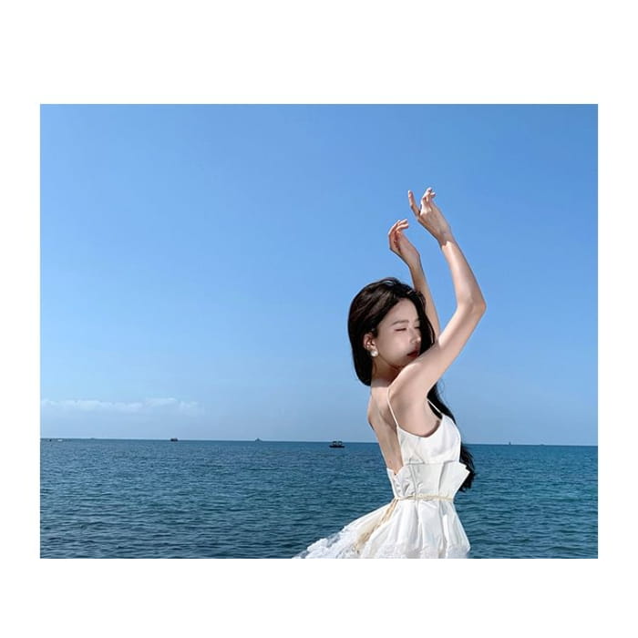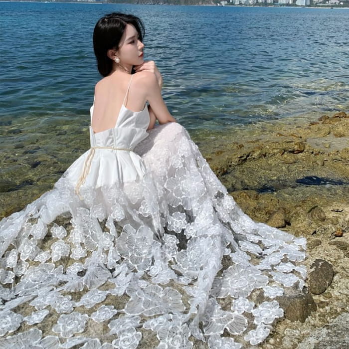 Maxikleid mit Spaghettiträgern und Spitzeneinsatz