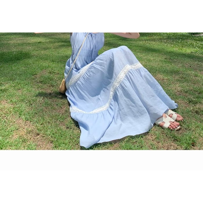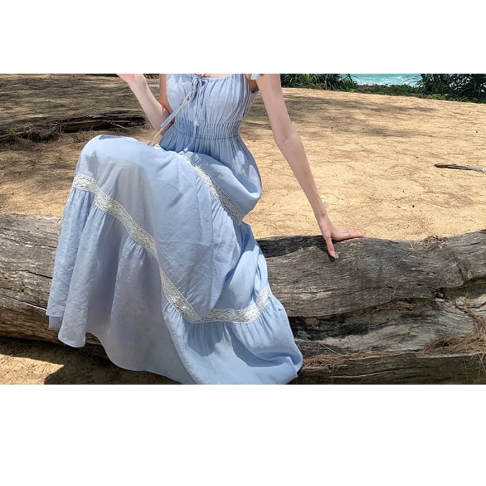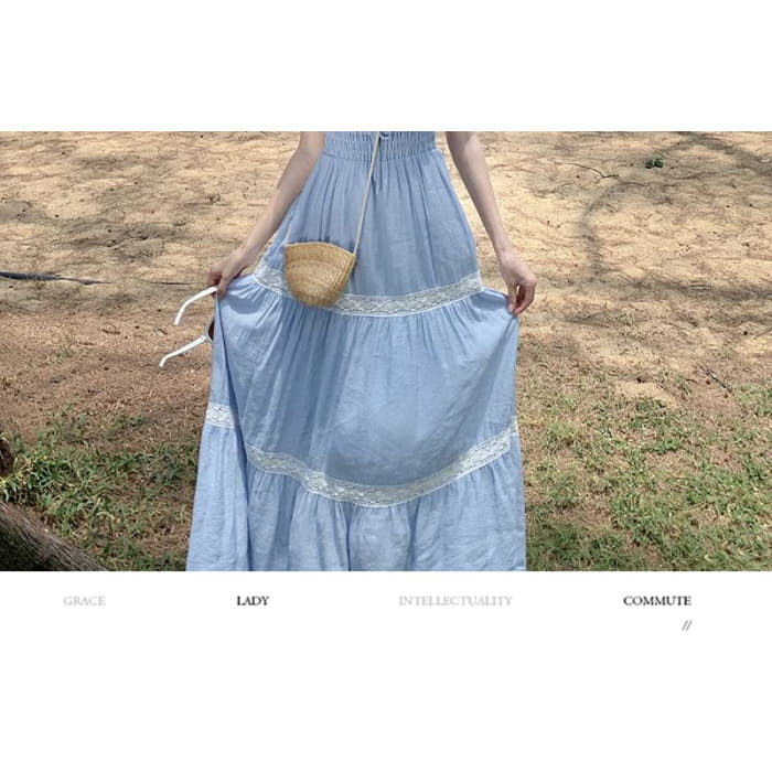 Maxikleid mit Spaghettiträgern und Spitzenbesatz