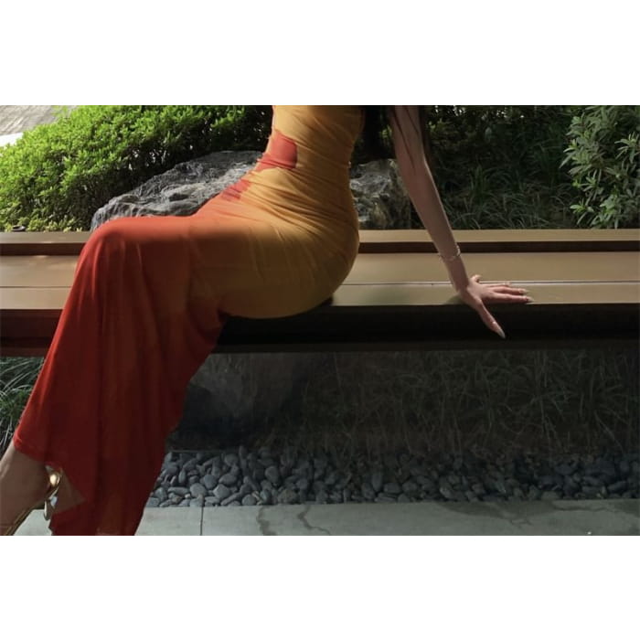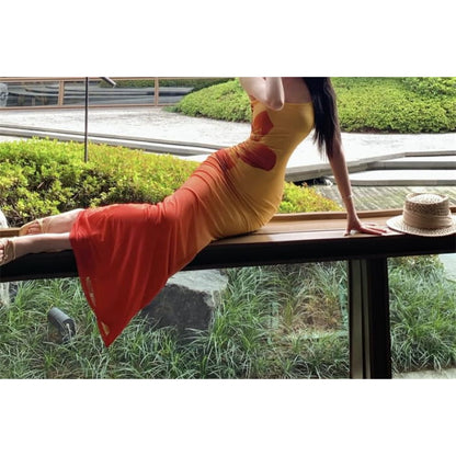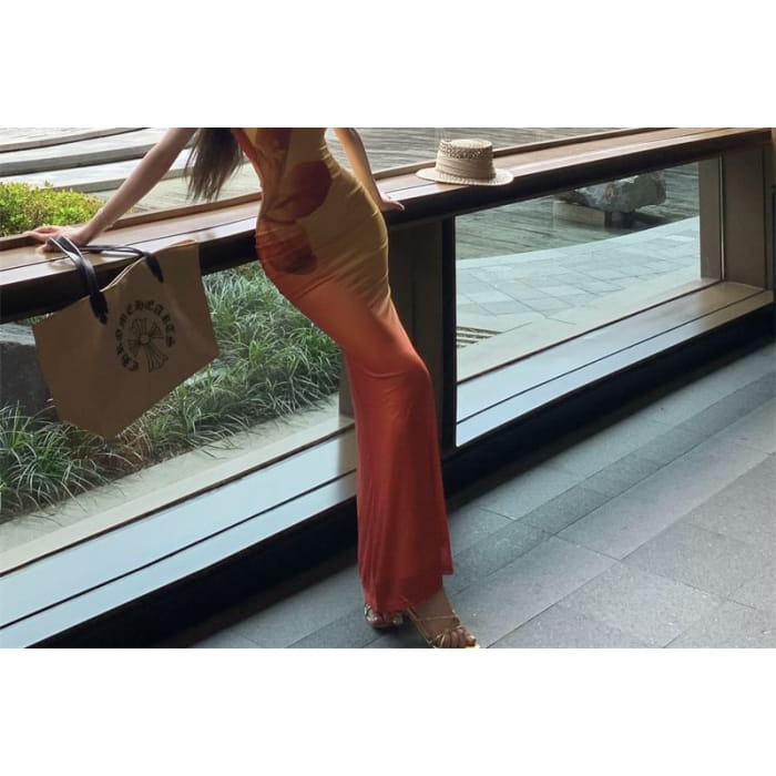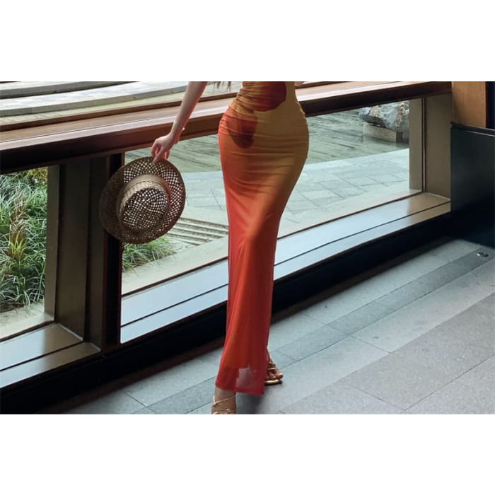 Maxi-Etuikleid mit Spaghettiträgern, U-Ausschnitt und Blumenmuster