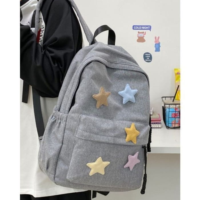 Nylon-Rucksack mit Reißverschluss und Stern-Applikationen