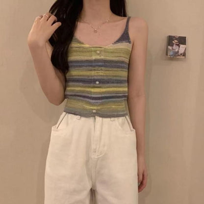 Kurzes Camisole-Oberteil aus Strick mit Streifen und Kunstperlen