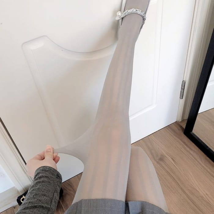 Transparente Strumpfhose mit gestreiftem Spitzenbesatz