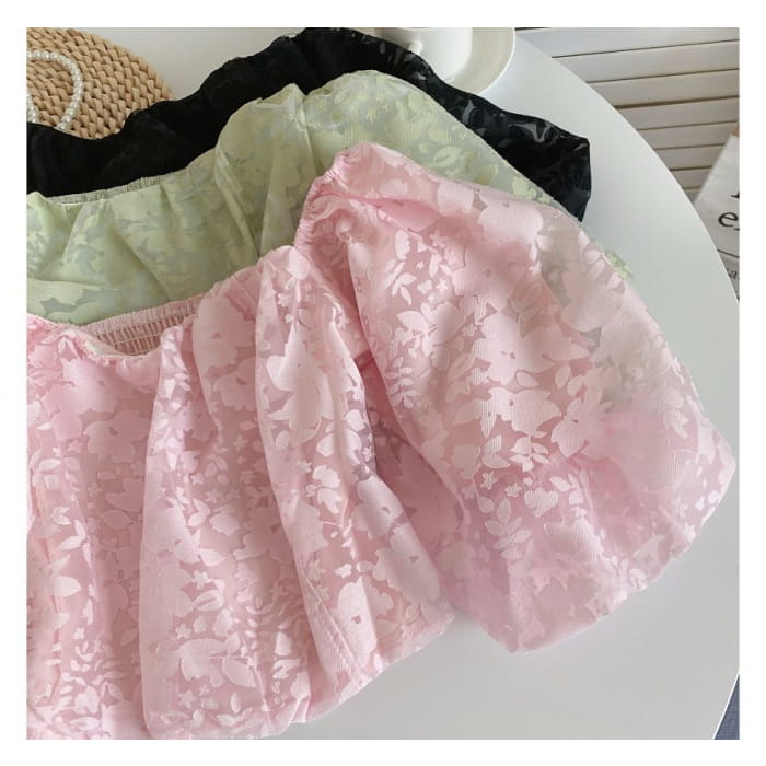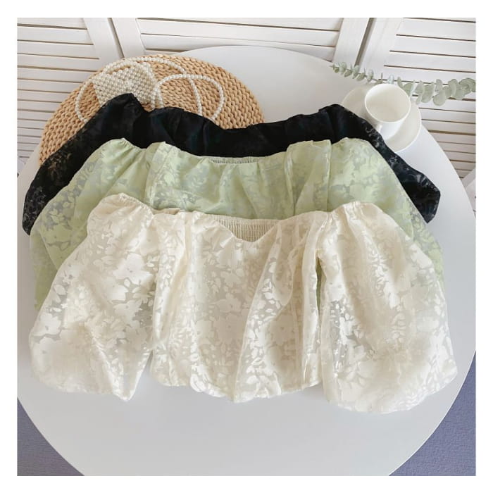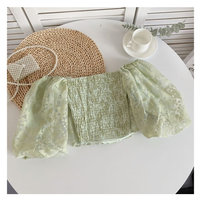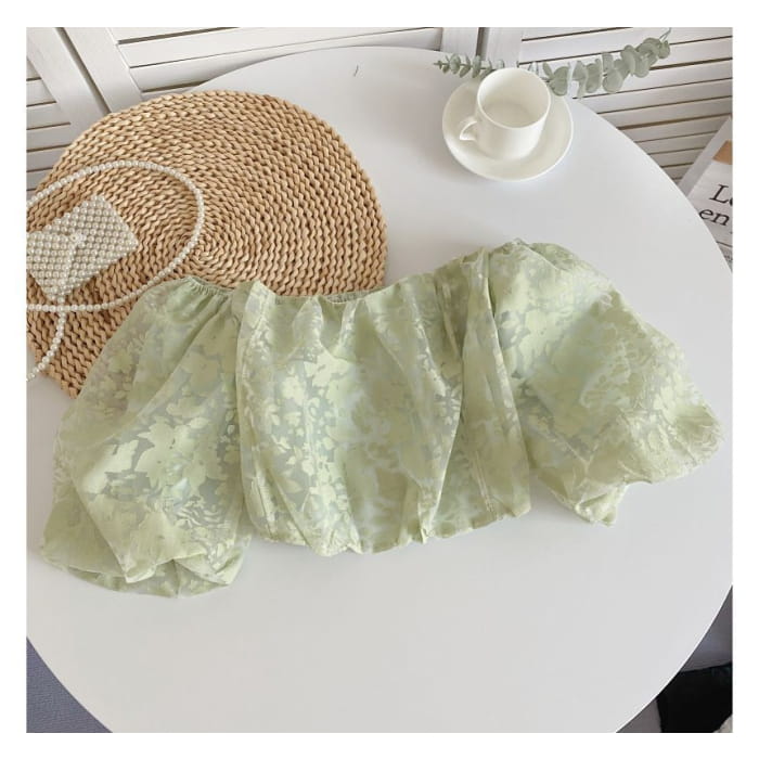 Kurzes Top mit herzförmigem Kragen und Puffärmeln