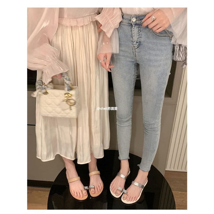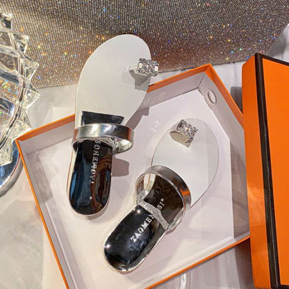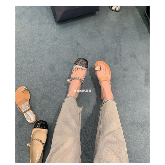 Sandalen mit Zehenschlaufe und Strasssteinen