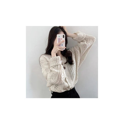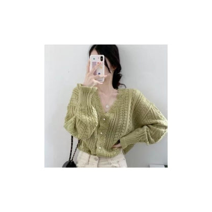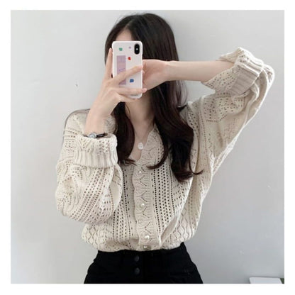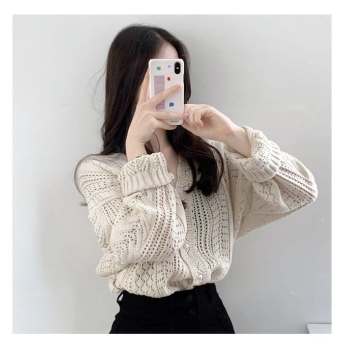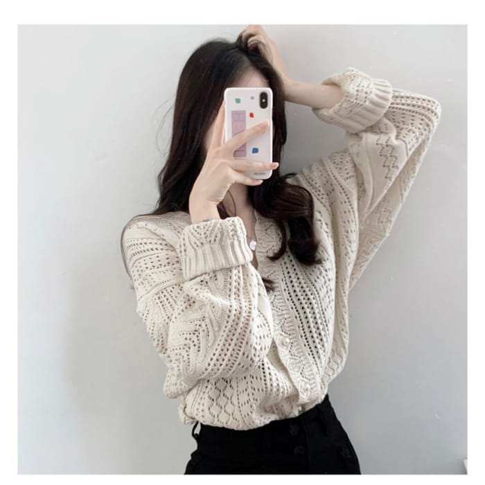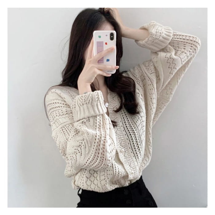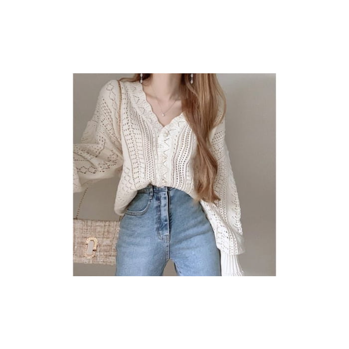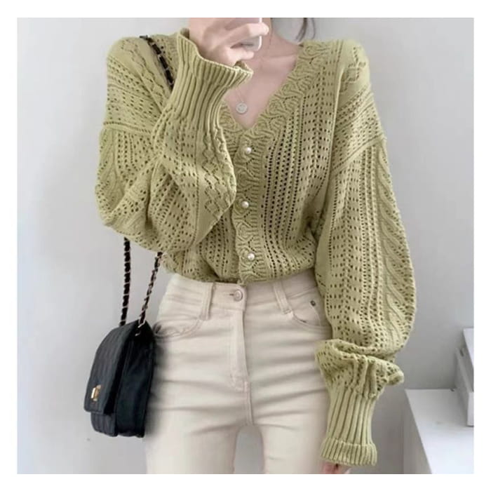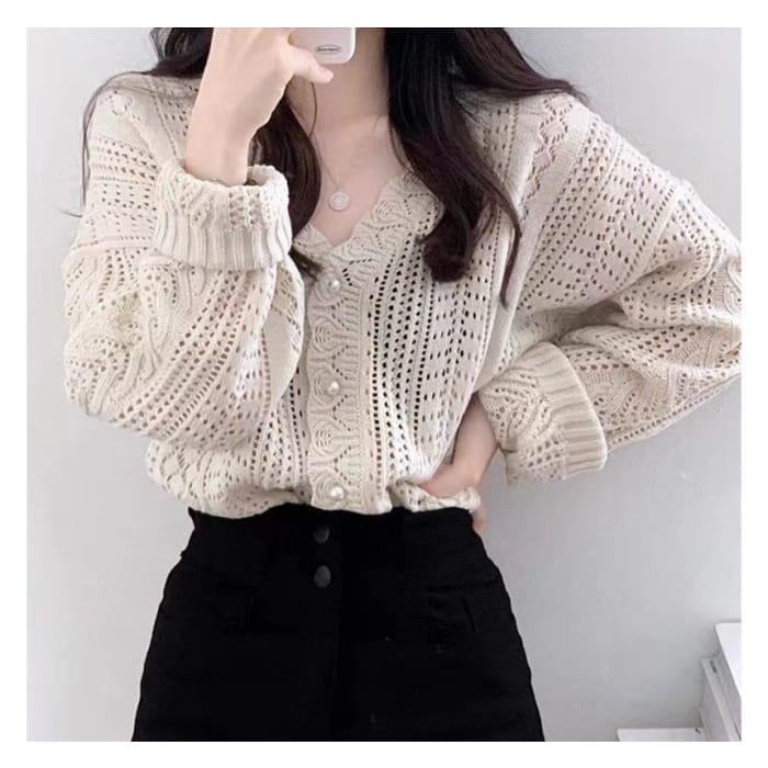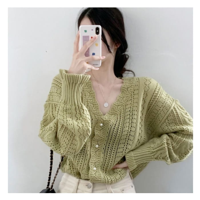 Plain Pointelle-Strickcardigan mit V-Ausschnitt