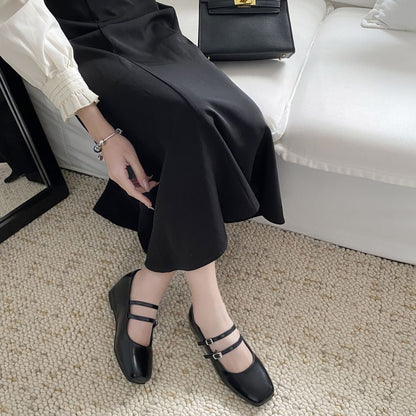 Wedge-Heel Dual-Strap Mary Jane Flats