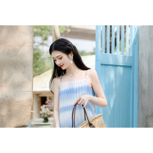 Set: Spaghetti Strap Tie Dye Pleated Midi
