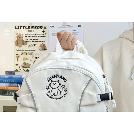 Cat Embroidered Multi-Pocket Backpack / Bag Charm / Set