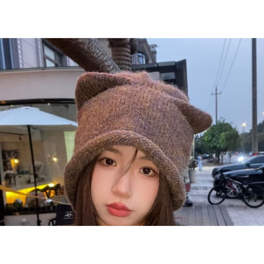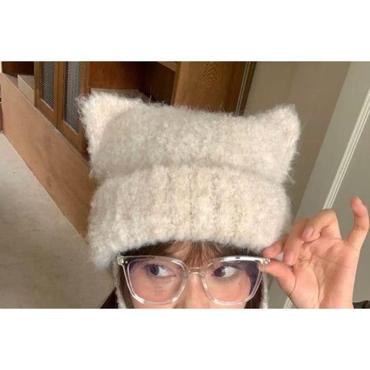 Cat Ear Chenille Headband / Lace Eye Mask / Set