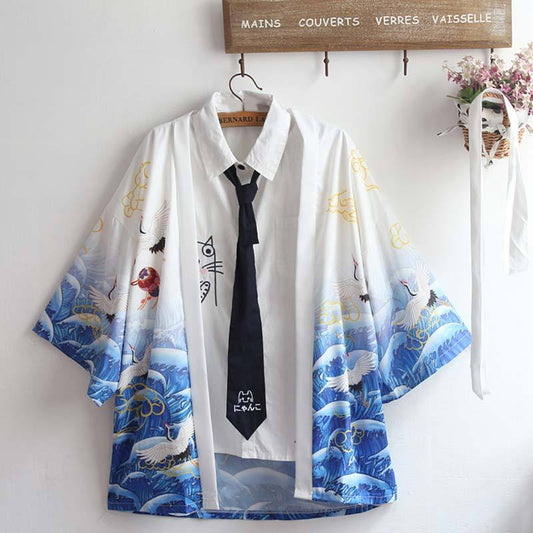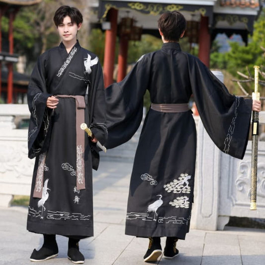 Crane Embroidered Hanfu Jacket / Patterned Blouse / High Waist Chinese Character Print Maxi