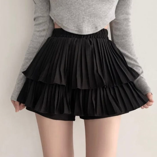 Elastic Waist Plain Pleated Panel Maxi A-Line Skirt