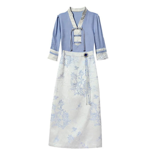 Elegant Floral Print Cheongsam Dress Coat Two Pieces Set