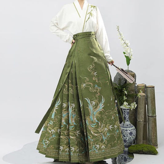 Elegant V-neck Shirt Vintage Print Pleated Skirt