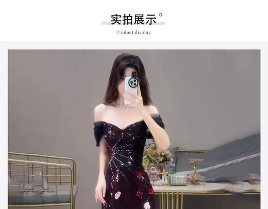 Evening Back Strap Gown Spaghetti Open Trained Sequin Mermaid