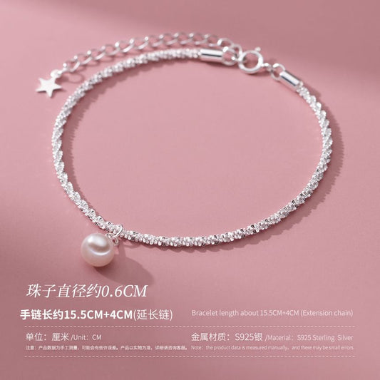 Faux Pearl Rhinestone Sterling Silver Necklace
