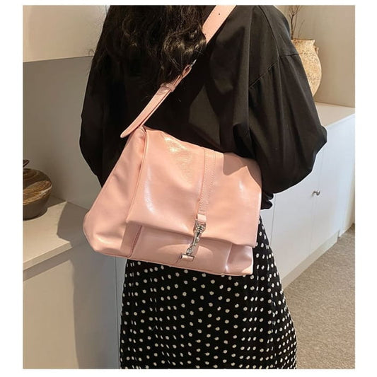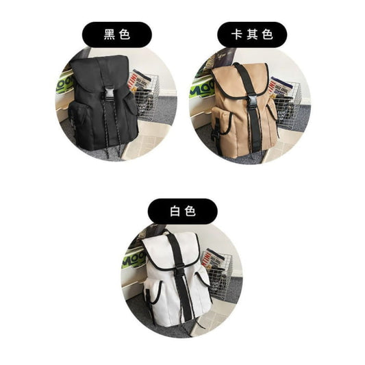 Flap Accent Plain Nylon Drawstring Bow Backpack