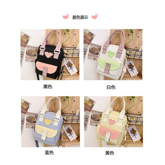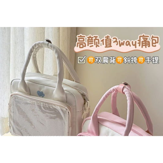 Heart Embroidered PVC Panel Crossbody Bag / Bag Charm / Set