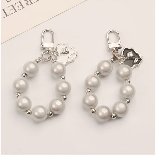 Heart Faux Pearl Bag Charm Keyring (Various Designs)