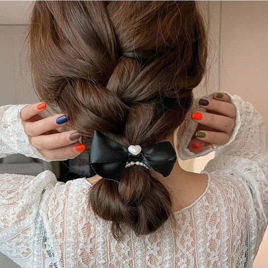 Heart Faux Pearl Bow Hair Tie