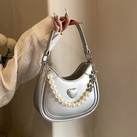 Heart Faux Pearl Chain Shoulder Bag