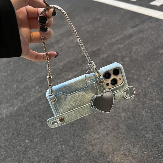 Heart Faux Leather Mirror Case Phone
