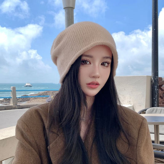 Lettering Applique Cat Ear Chenille Beanie