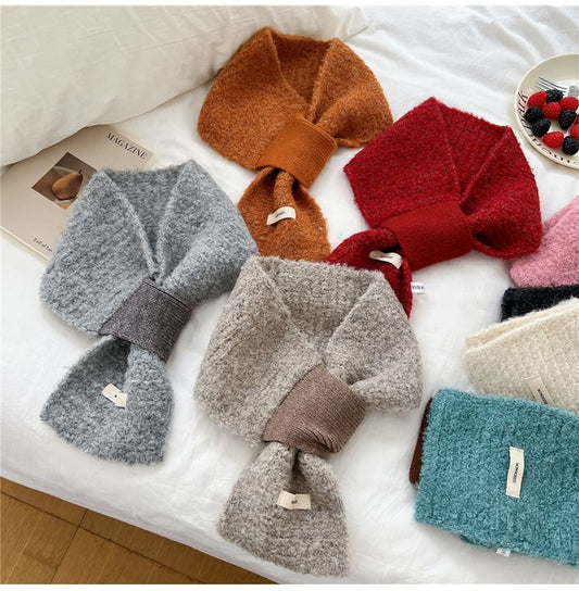 Lettering Applique Color Block Knit Scarf