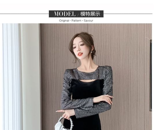 Long-Sleeve Crew Neck Sequined Cutout Bodycon Dress (Various Designs)