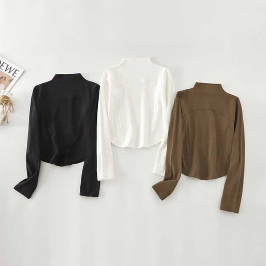 Long-Sleeve Off Shoulder Asymmetrical Plain Top