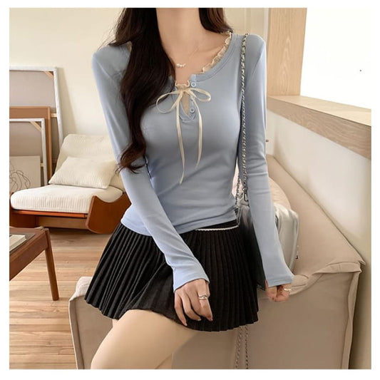 Long-Sleeve Notch Neck Raglan T-Shirt