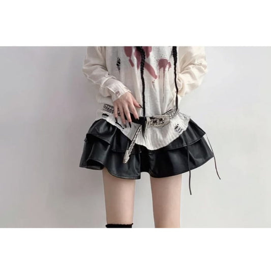 Patterned Short Print Two Sleeve Asymmetrical Tee Piece Mock