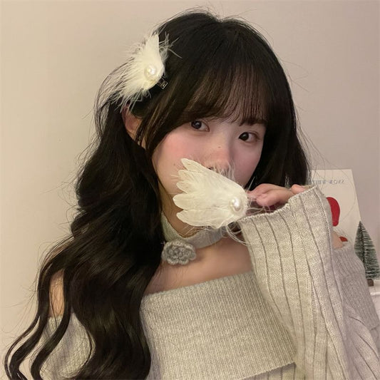 Pearl Faux Feather Clip Hair of Set 2: