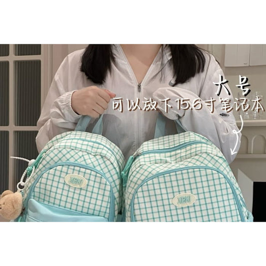 Plaid Multi-Pocket Backpack / Bag Charm / Set