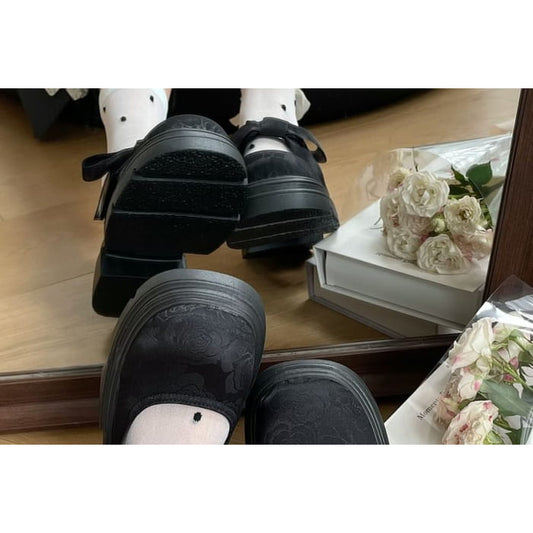 Platform Floral Jacquard Bow Accent Mary Jane Shoes
