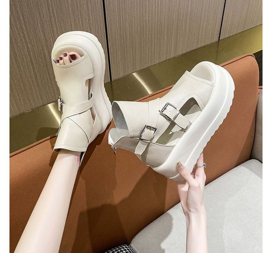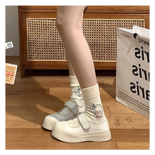 Platform Jane Leather Shoes Faux Strap Adhesive Mary