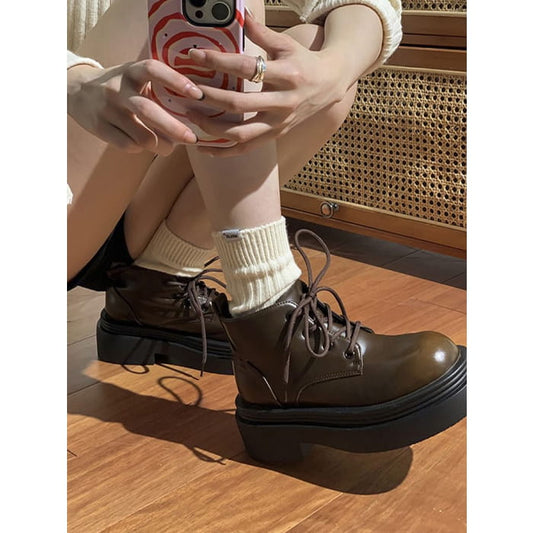 Platform Heel Pumps Leather Patent Mary Block Jane