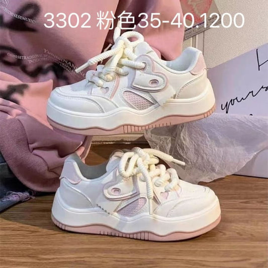 Platform Two Tone Heart Applique Faux Leather Lace-Up Sneakers