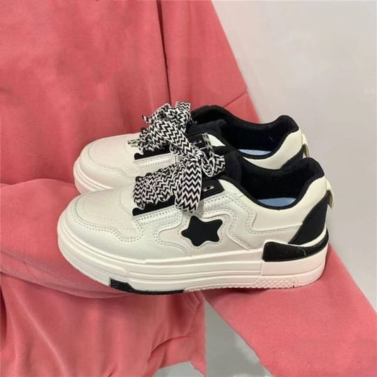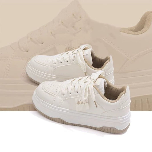 Platform Two Tone Lettering Print Lace-Up Sneakers
