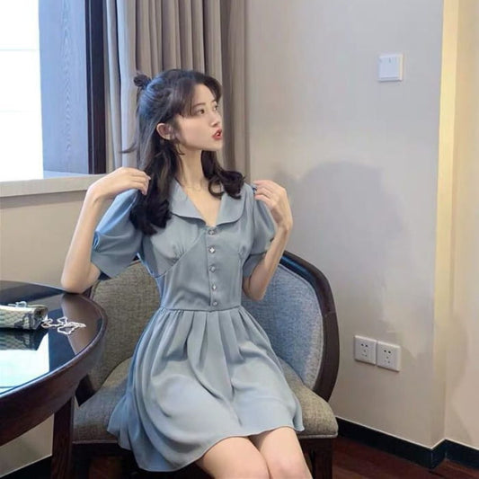 Puff Sleeve Collared Plain Ruffle Blouse