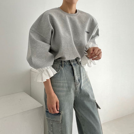 Puff-Sleeve Crewneck Lettering Pullover