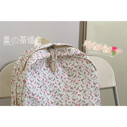 Floral Multi-Pocket Backpack / Bag Charm / Set